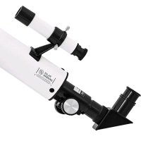 Refraktor s průměrem objektivu 50 mm poskytuje skutečný optický pohled na nebeské objekty. Přístroj není určen k extrémnímu zvětšení, což usnadňuje dětem rychlé zvládnutí základů vyhledávání a zaostřování.