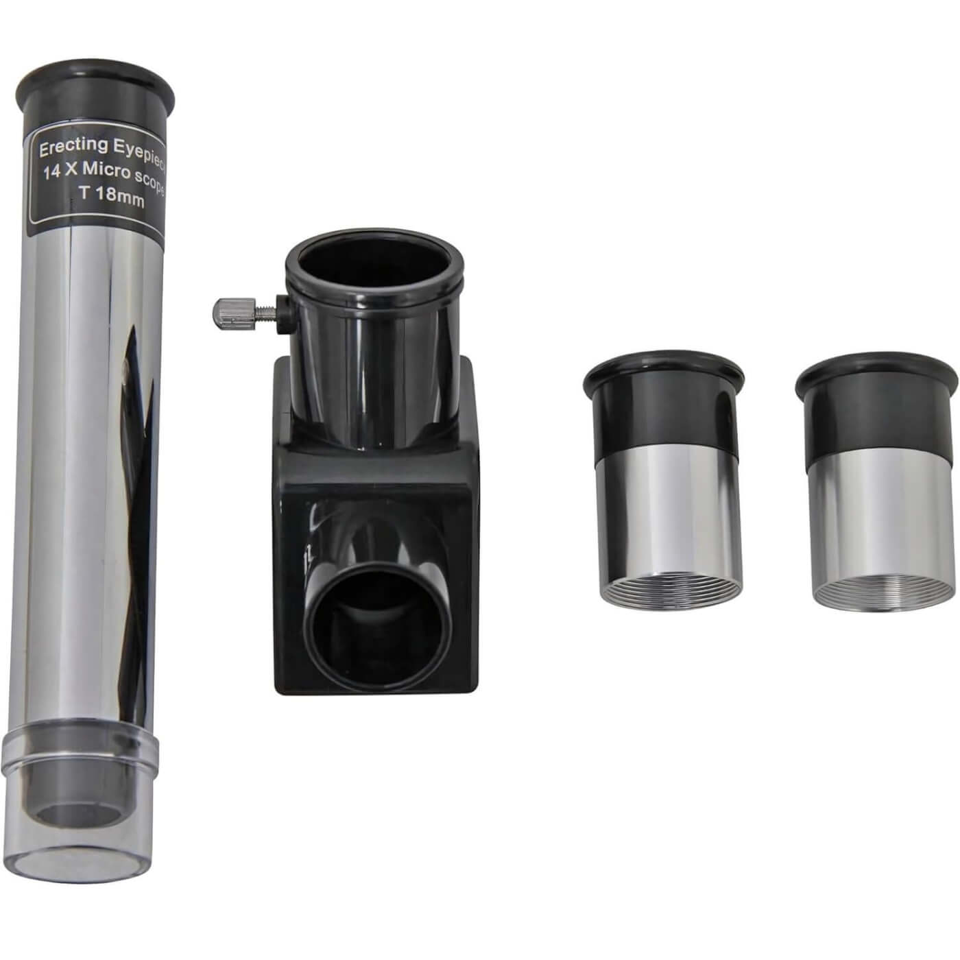 Součástí balení je stolní stativ, hledáček, okuláry – vše, co je potřeba ke snadnému začátku. Díky jednoduché konstrukci je sestavení rychlé a bezproblémové, i pro rodiče bez zkušeností.