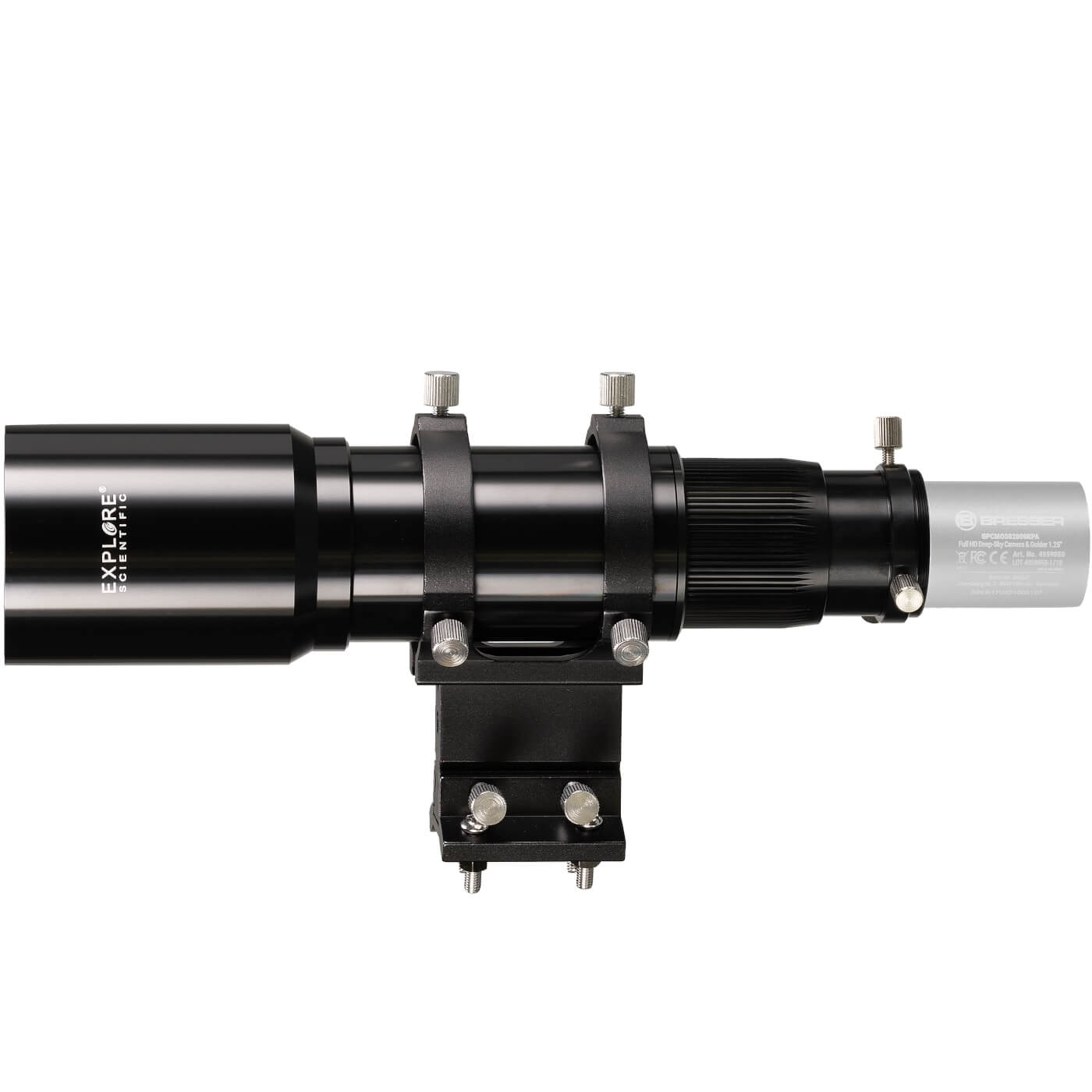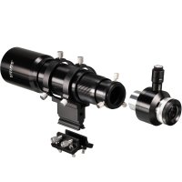 Připojení naváděcí kamery je možné dvěma způsoby - přes standardní zásuvné spojení 1,25″ (31,7 mm) nebo přes závit T2 (M42x0,75 mm). Kamera je v zásuvném spojení zajištěna mosazným kroužkem a třemi upínacími šrouby, takže nedojde k nežádoucímu pohybu ani při dlouhé expozici. Maximální doporučená hmotnost kamery připojené k dalekohledu je 550 g, což pokryje naprostou většinu běžně používaných naváděcích kamer. Naváděcí dalekohled se vkládá do stávajícího hledáčkového saně fotografujícího dalekohledu a seřídí se paralelně s jeho optickou osou.