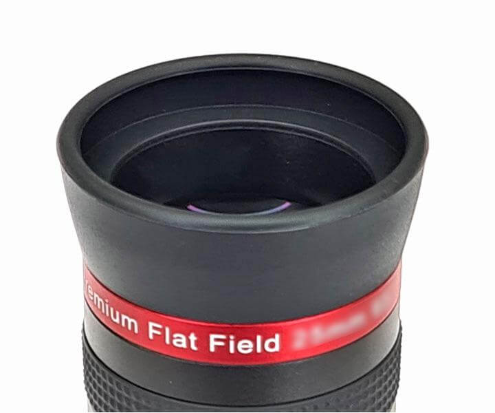 Prémiový okulár s plochým zorným polem je ideálním nástrojem pro každého, kdo chce z dalekohledu vytěžit maximum. Korekce obrazového pole zůstává účinná i při použití s rychlou optikou (nízké ohniskové číslo f/5 nebo méně), kde levnější okuláry obvykle selhávají. Zdánlivý úhel zorného pole 60° poskytuje příjemný prostorový pocit při pozorování a zároveň udržuje kompaktní rozměry okuláru. Pohodlný výstupní pupilát 16 mm umožňuje bezproblémové použití i s brýlemi.