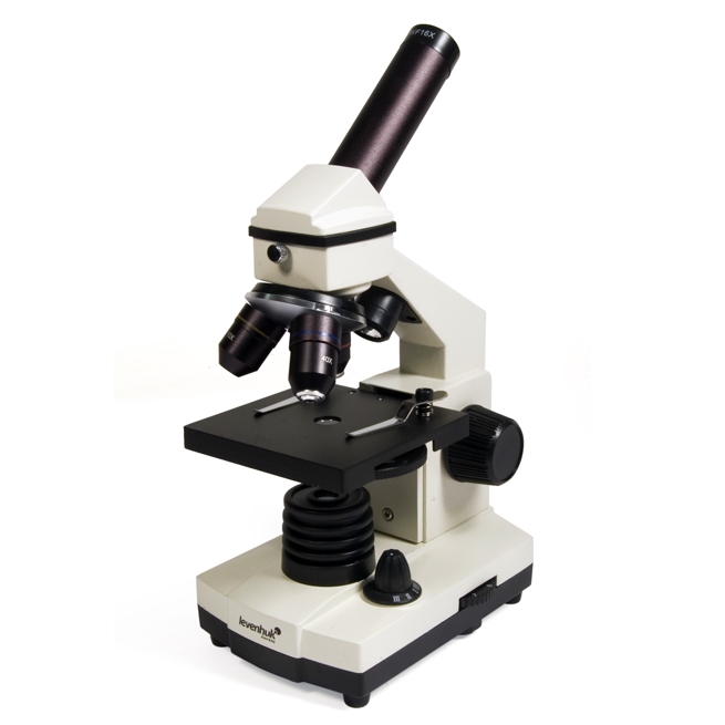Zvětšení mikroskopu je vyvoláno zvětšením čoček objektivu a okuláru. Okulár tvoří horní část tubusu mikroskopu, do které se koukáme. Pod ním se nalézá objektiv; tento vytváří obraz, jenž vidíme v okuláru. Klasické balení mikroskopu Levenhuk 2L NG obsahuje jeden okulár WF16x a tři objektivy (4x, 10x, 40x).