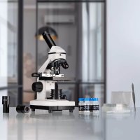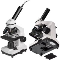 Pro optimální osvětlení je mikroskop vybaven variabilním LED světlem pro procházející i dopadající světlo a filtrovým kotoučem, který zajišťuje ideální světelné podmínky pro všechny vzorky. Osvětlení shora je obzvlášť důležité pro pozorování neprůhledných objektů, jako jsou listy, drobný hmyz a mnoho dalšího. Díky tomu je mikroskopie pro začátečníky velmi snadná! Napájení zajišťují baterie (3× AA). Součástí balení je také ochranný kryt proti prachu, 5 připravených preparátů, 5 prázdných podložních sklíček a krycí sklíčka pro přípravu vlastních vzorků.