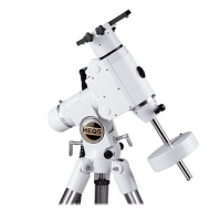 Inovovaná těžká německá rovníková montáž HEQ-5 Syntrek s jednoduchým směrovým ovladačem na výškově stavitelném stativu s 1.75” stojnami a odkládací plochou na příslušenství. Montáž je vybavena novou generací krokových motorů, vstupem pro autoguider a novou elektronikou, umožňující jednoduchý upgrade na plnou GOTO verzi pouhou výměnou jednoduchého ovladače za computerizovaný. Standardní funkce hodinového stroje, elektrické posuvy v obou osách, napájení 12V (klidový odběr min. 1.5A). Nosnost cca 20 kg fotograficky a 30 kg vizuálně. Nosnost 15kg.