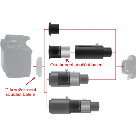Abyste mohli sestavit své astrofotografické vybavení, budete také potřebovat koružek T2 - prodává se samostatně.