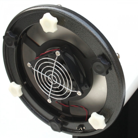 Ventilátor pro chlazení primárního zrcadla: Dokud nebude zrcátko řádně studené, bude vytvářet proudy teplého vzduchu, které budou zhoršovat obraz – bez ohledu na to, jaká podkladová vrstva pod zrcátko je použita. Tento efekt skončí v okamžiku, kdy je zrcátko studené. Chladicí ventilátor zkracuje dobu ochlazování.