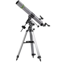 Objevte fascinující noční oblohu — lidstvo byla k nočnímu nebi přitahováno od nepaměti. Dalekohled BRESSER 90/900 Space Explorer vám ukáže divy vesmíru. Díky průměru objektivu 90 mm zachytí dalekohled 165× více světla než lidské oko . Dlouhá ohnisková vzdálenost 900 mm přibližuje hvězdné zajímavosti do zorného pole. Pozorujte přirozený satelit Země — Měsíc, vydejte se opticky na planety nebo přejděte za hranice Sluneční soustavy a objevte jasné objekty hlubokého nebe. Refraktor je uchycen na pevný hliníkový stativ, který zajišťuje maximální stabilitu při pozorování. Součástí je rovněž polička na příslušenství pro uložení okulárů, Barlowova členu a dalších doplňků. Díky paralaktické montáži EQ3 můžete kompenzovat pohyb Země a ručně přiostřovat tak, aby vámi vybraný objekt zůstal ve zorném poli.