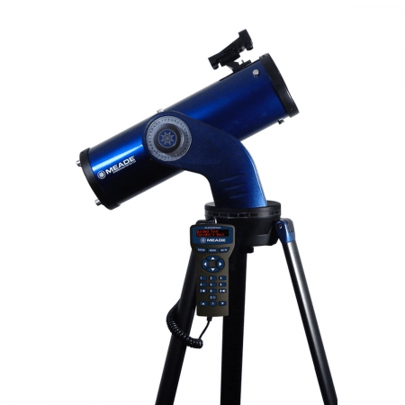114 mm Refrakční teleskop StarNavigator NG je lehký a kompaktní teleskop ovládaný počítačem pro nadšence a začátečníky. Obsahuje snadno ovladatelný, lehký a přenosný robotický držák s řídicí jednotkou Meade AudioStar ovládanou počítačem. Tato neuvěřitelná technologie AudioStar pozná noční oblohu ihned po vybalení z krabice. Po zapnutí teleskopu a po krátkém zaměření je váš teleskop připraven provést vás prohlídkou nejlepších objektů noční oblohy. S databází Audiostars s 30 000 objekty a více než 4 hodinami zvukových prezentací, zabudovaných v elektronice, se můžete dozvědět informace o právě pozorovaných objektech. Je to jako s profesionálním astronomem přímo u teleskopu!