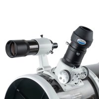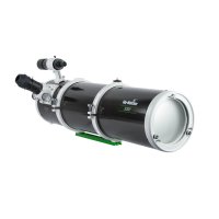 Dalekohled typu Newton 200/1000, 8″, f/5, hledáček 9x50, okulárový výtah typu Crayford, výstup 2″ s redukcí na 1,25″. Upínací kruhy a 2″ lišta pro přichycení k montážím EQ-5, HEQ-5, EQ-6.