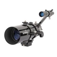 Čočkový dalekohled (refraktor) se světelností f/5, průměr objektivu 80mm, ohnisková dálka 400mm, achromát. Výstup 1.25” s T2 adaptérem na připojení fotoaparátu. Upínací objímky s krátkou lištou na fotošroub. Vhodný přenosný dalekohled pro pozemní pozorování, přehlídky oblohy, vhodný i jako pointační dalekohled. Nutno doplnit o okuláry a hranol.