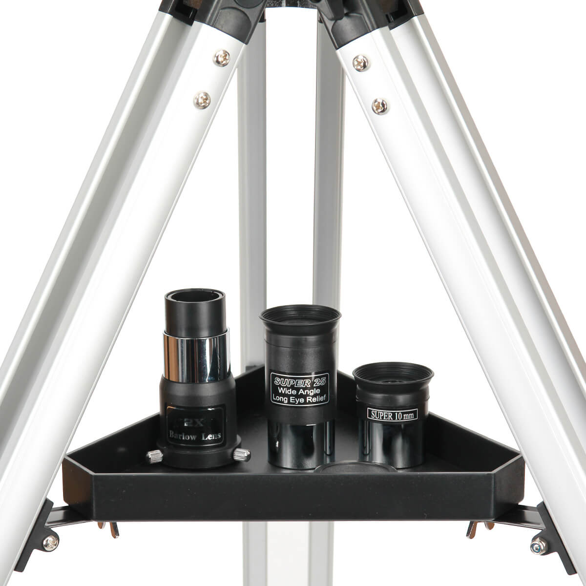 Stylový Newtonův zrcadlový dalekohled na ekvatoriální montáži. Zdánlivá jednoduchost a nízká cena neubírá na kvalitě tohoto zařízení. Tento model Vám umožní se kochat pohledem na detaily povrchu Měsíce, zkoumat strukturu planet sluneční soustavy i stovky objektů vzdáleného vesmíru. Rozlišení je cca 1 úhlová vteřina. Díky nízké numerické apertuře (světelnosti) je celé zorné pole dalekohledu bez aberací. Ekvatoriální montáž EQ2 je vybavena mechanismy decentních pohybů. Taktéž máte možnost vybavit montáž motorem na RA ose pro automatické sledování objektů.