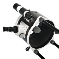 Newton 254/1200mm, parabolické primární zrcadlo o průměru 254mm (10”) splňující minimálně přesnost lambda/8, sekundární zrcátko s osou 58mm (zastínění cca 23%), světelnost f/4.7. Dobsonova azimutální montáž s valivými ložisky v obou osách a brzdou v elevaci. Inovovaný tubus zasouvací s fixací třemi šrouby (snažší přeprava a skladování). Přímý hledáček 8x50, okulárový výtah typu Crayford, výstup 2”, redukce na 1.25”, okulár 2” s ohniskem 28mm a zorným polem 70° (43x). Hmotnost tubusu 12.5 kg, hmotnost základny 15kg.