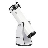 Newton 254/1200mm, 10”, f/4.7 Dobsonova azimutální montáž s azimutálním posuvem na nylonových blocích. Výšková aretace/stavitelný přítlak přes axiální ložisko. V základní výbavě je ložiskový okulárový výtah typu Crayford s výstupem 56mm, opatřený redukcí 56mm/2” a 56mm/1.25” doplněnou o T-závit. Hledáček 9x50, primární zrcadlo - Pyrex s přesností 1/6-1/8 lamba (minimálně).