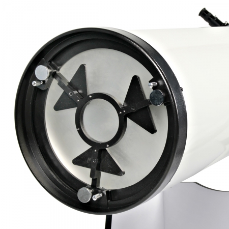 Zrcadlový dalekohled typu Newton 305/1500 mm 12”, světelnost f/5 Dobsonova azimutální montáž s azimutálním posuvem na nylonových blocích. Výšková aretace/stavitelný přítlak přes axiální ložisko. V základní výbavě je ložiskový okulárový výtah typu Crayford s výstupem 2”, opatřený redukcí na 1.25” doplněnou o T-závit. Hledáček 9x50, primární zrcadlo - Pyrex s přesností 1/6 - 1/8 lamba (minimálně).