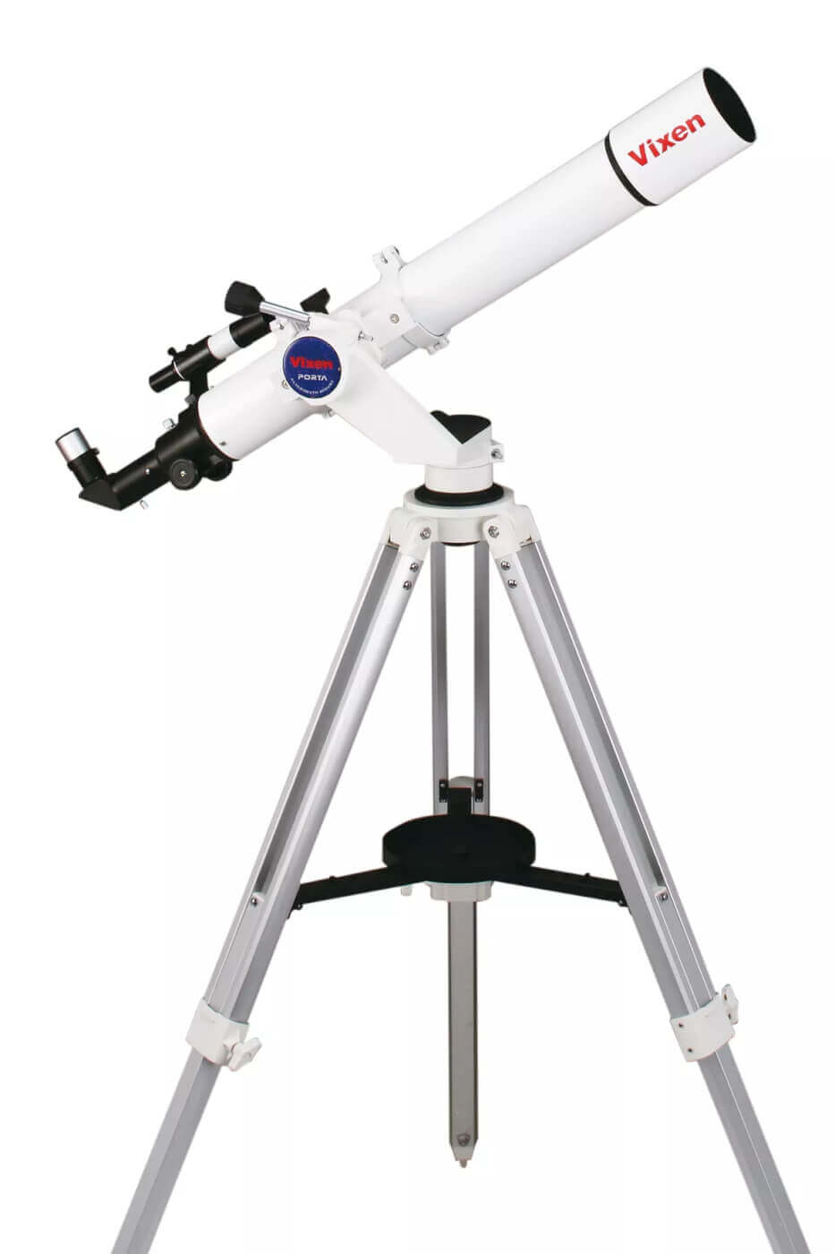 Montáž PORTA II není populární jen mezi začátečníky - také umožňuje zkušeným astronomům rychle a snadno namontovat svá zařízení. PORTA II má kvalitní design a je vybaven funkcí jemného nastavení pro obě osy. PORTA II nepotřebuje svorky, protože má skluzné spojky, které vám umožní nastavit polohu podle vašeho požadovaného objektu. Automaticky si udržuje polohu, což usnadňuje ovládání pro uživatele všech úrovní schopností. Refraktor A80Mf je ideálním model pro začínající astronomie, kteří oceňují vysokou kvalitu optiky. Díky kontrolám kvality od Vixen jsou 80 mm čočky vyrobeny ve vynikající kvalitě. Refraktor je dodáván s dvěma okuláry Plössl (6,3 mm a 20 mm).