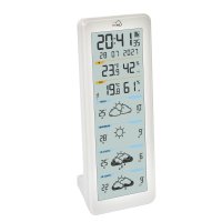 Moderní design se hodí do každého interiéru. Díky orientaci na výšku se vnitřní jednotka obzvláště hodí na stolky na poličky, které jsou úzké nebo na nich už nezbylo moc místa. Stojánek na zadní straně je snímatelný, takže meteotasnici lze snadno i zavěsit na stěnu.